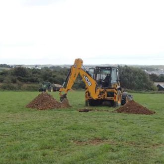 The testing was undertaken using machine-excavated trial pits, with a tractor-towed water bowser used to provide the large volumes of water required for testing. Where practicable, Ruddlesden geotechnical use local plant hire firms and agricultural contractors for all of our ground investigation work.