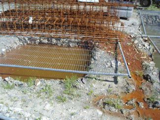 An effervescent (oily) and rusty sheen was noted on water within initial foundation excavations and concern was raised about possible contamination from a nearby former railway siding.