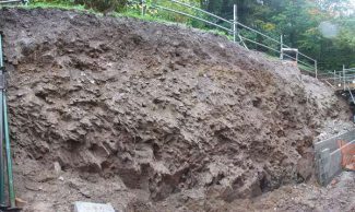 Whilst it was considered that one of the excavations could be safely graded back to a safe angle of repose to facilitate the construction of the retaining wall, where this was not possible, the soils and rock exposed in the excavation were retained by a proprietary geo-grid/ mesh pinned into the slope, to mitigate the risk of rock fall.